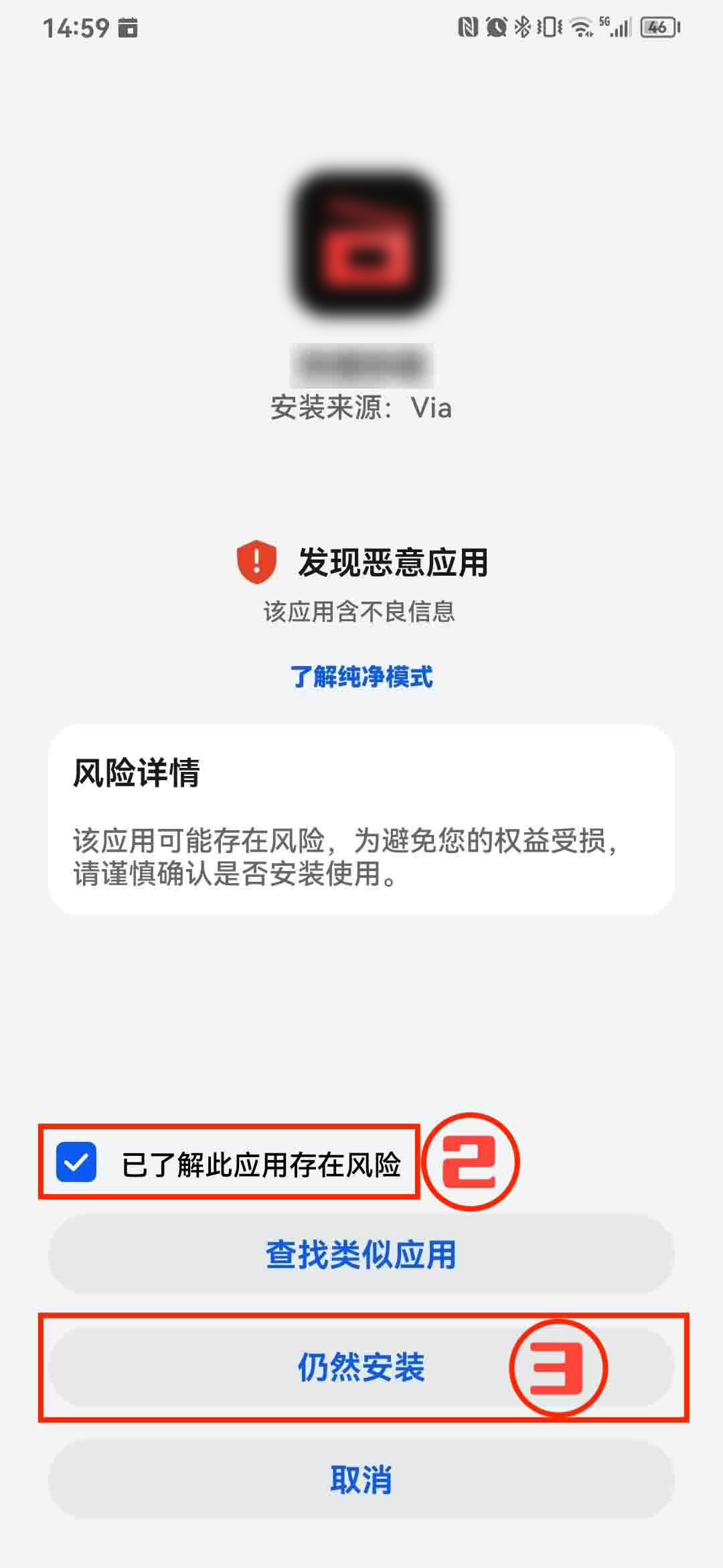 2.再次点击apk安装,点击[了解风险],勾选[已了解此应用存在风险]并点击[仍然安装]
